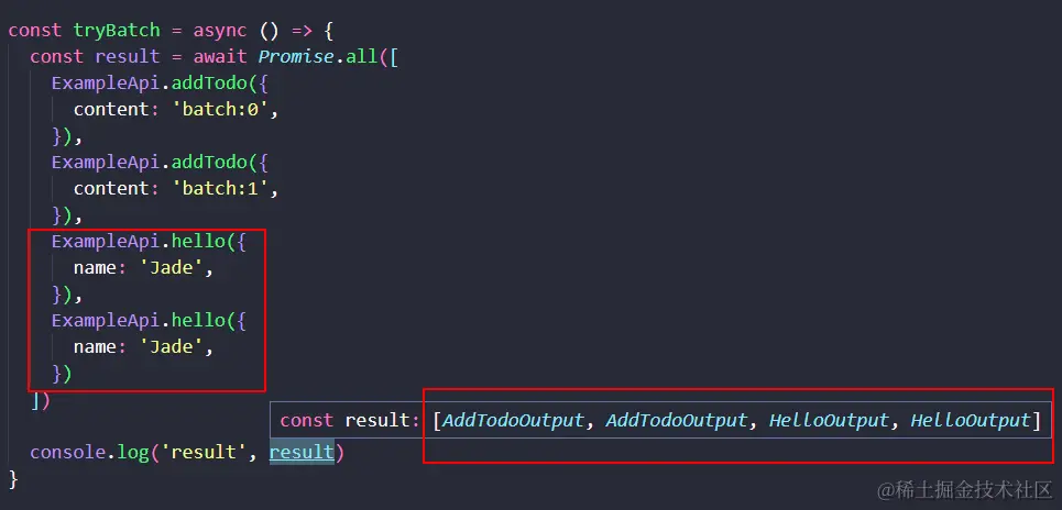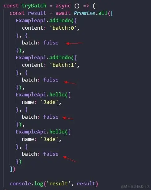 如上,为了演示方便,我用 Promise.all 将 3 次 RPC 函数调用的结果打包到一起返回,但我们仍需知道,它们其实是三个独立的 RPC 调用,被写到一起还是分散在其它地方调用,不影响结果。Promise.all 只是在前端汇总 promises 结果,不包含接口相关的 merge & batch & stream 等作用。