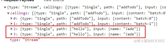 但我们的请求却只包含了 3 次 RPC 调用及其响应,其中 2 次的重复调用被合并为一次。