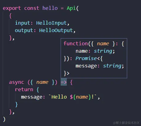 如上所示,生成到注释的方式,比朴素的接口契约更贴近开发者,可以在代码编辑器里直观地看到接口描述和类型描述,并且基于开发阶段的同步机制,它总是实时反映当前 RPC-BFF 的最新状态,避免了接口文档过时的问题。