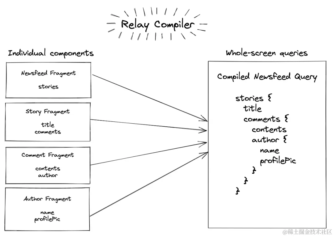或者像 Facebook/Meta 公司推出的 Relay 框架那样,实现一个 Compiler 去扫描代码里的 GraphQL Query 语句,自动生成类型到指定目录,让开发者可以直接使用。这块对研发团队的技术能力和工程化水平有较高要求。