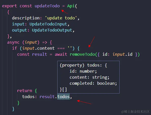 如上所示,在 updateTodo 中调用 removeTodo 并没有特殊的要求,就像调用别的异步函数一样简单,并且对于前端发起的 updateTodo RPC 调用也没有额外开销,仍是一次对 updateTodo 的远程函数调用。