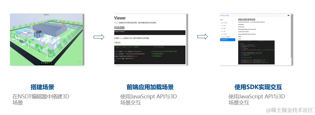 NSDT编辑器简化了WebGL 3D应用的开发,完全兼容Three.JS生态。用户可在自己的应用中嵌入使用NSDT编辑器搭建的3D场景,并通过JS API与场景进行交互。