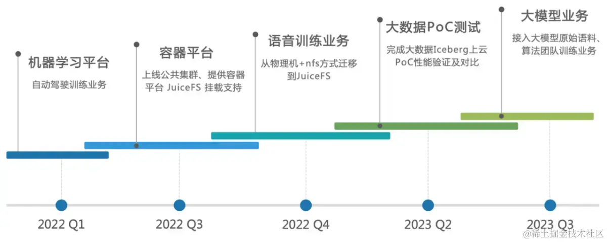 在过去的两年中,我们正式地将 JuiceFS 接入到了我们的学习平台。目前,它主要用于提供自动驾驶训练、部分手机训练和新一代语音训练的支持。