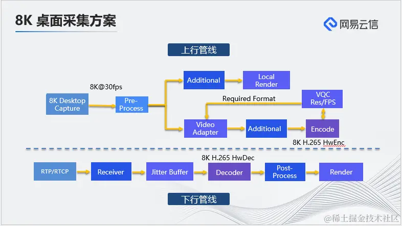 针对8K桌面采集我们目前采用高效率的DXGI方案,在指定硬件平台可实现8K 30fps视频采集,其他流程与基本的视频引擎Pipeline一致。