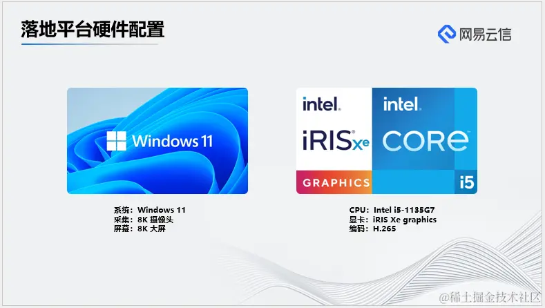我们的8K RTC系统在选定的一般硬件平台落地。CPU是Intel 11 代i5,显卡是 集成显卡 iRIS Xe Graphics,系统是 Windows11,显示设备为8K显示屏,使用8K 摄像头进行采集。