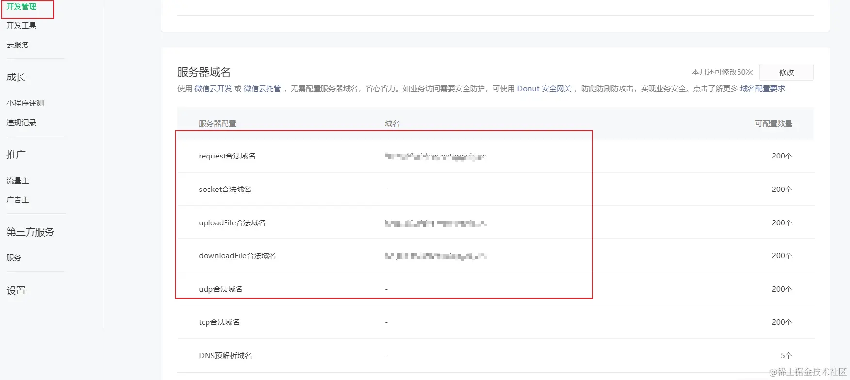 第三步: 登录微信公众平台,进入开发管理- -> 开发设置 添加 服务器域名