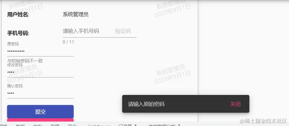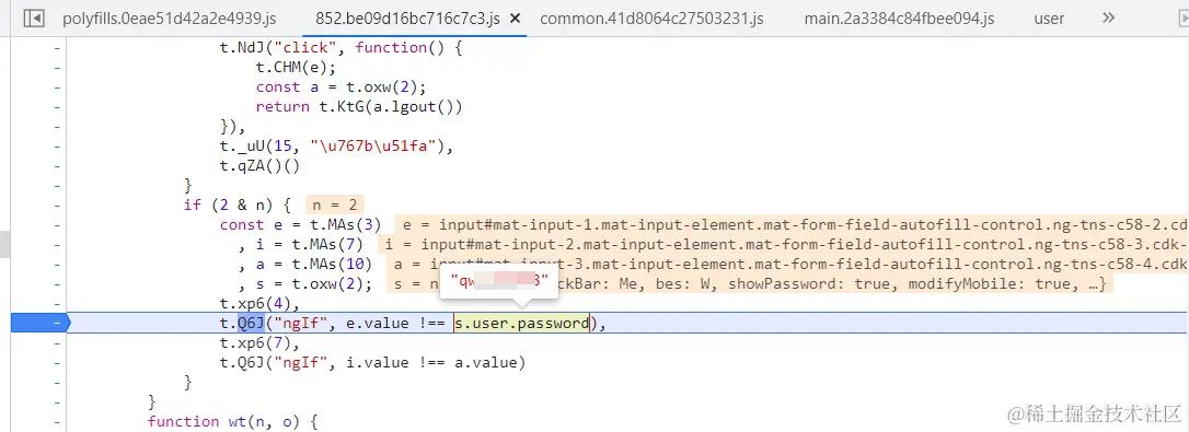 说明大概率前端校验(也有可能是抓不到,但是概率很小)接下来就是要分析前端js了。这边我主要分析的是文本框的"与初始密码不一致"这个提示信息的判断逻辑: