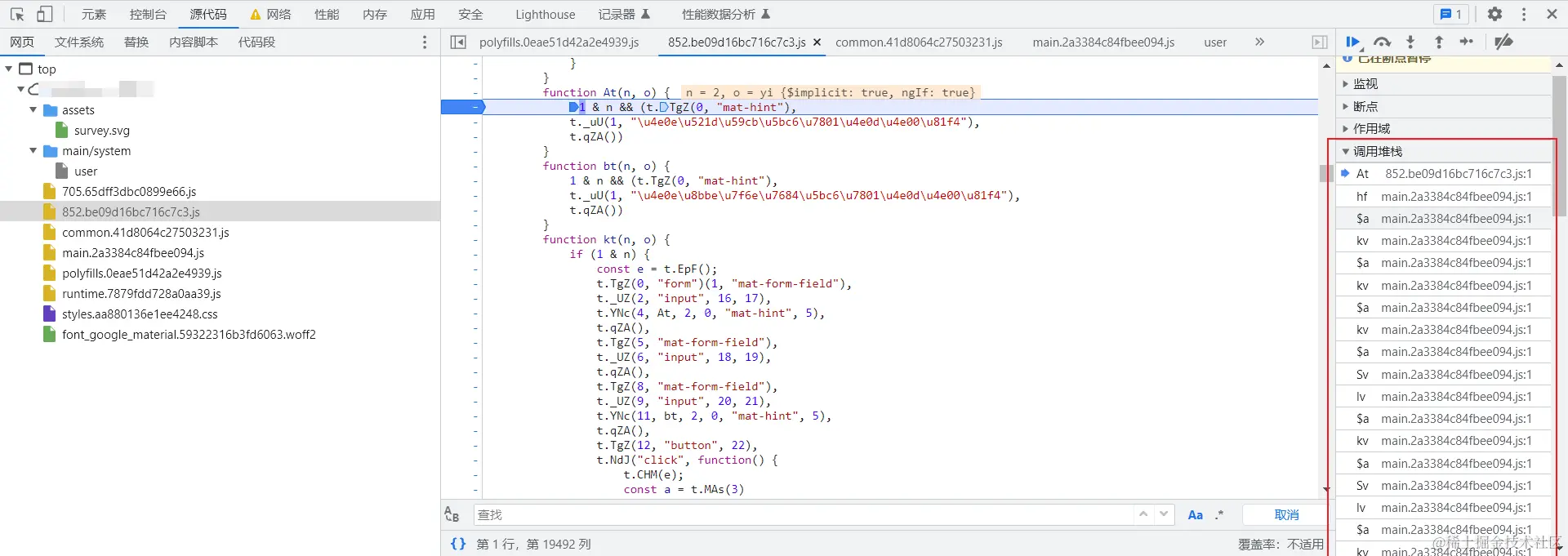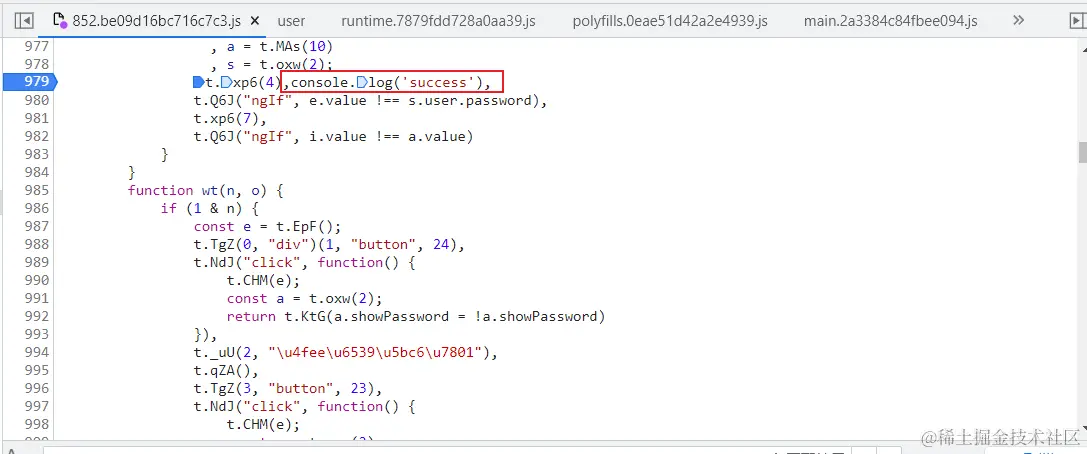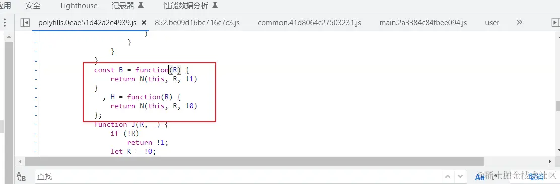 但是通过正向找过去,发现是经过多层调用的。且所有代码经过高度压缩混淆。