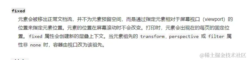 看到了官方对 fixed 的介绍