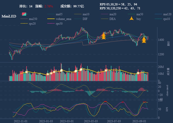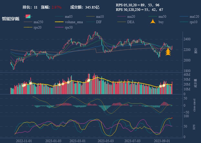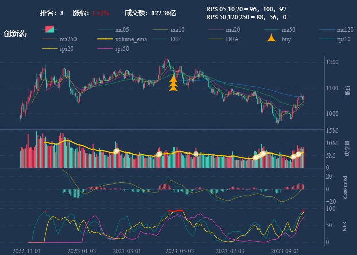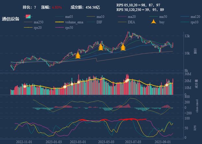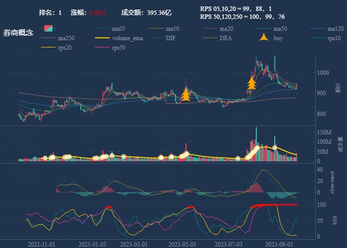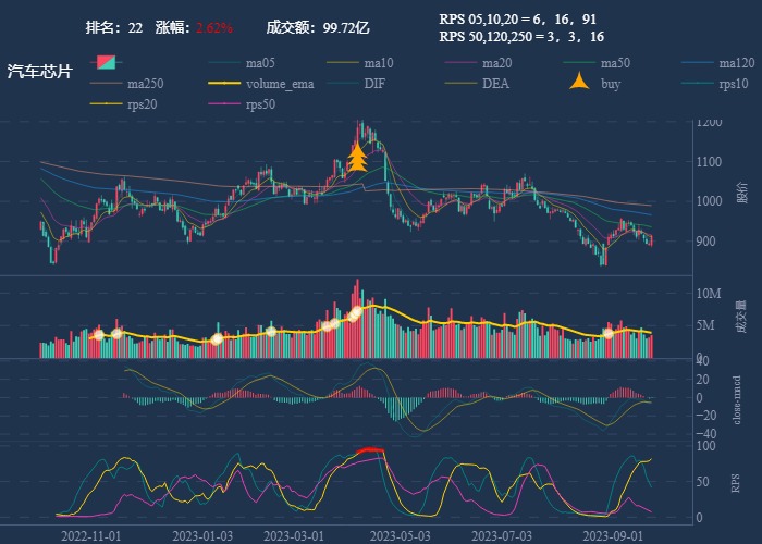 - 一线红:第一次买点出现后往往是顶峰,等回调,macd 反转,rps50 还一直红,第二次买点重现
