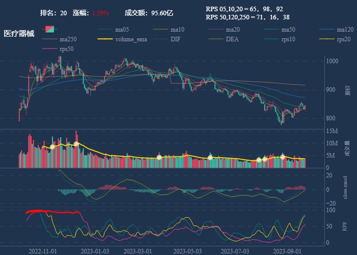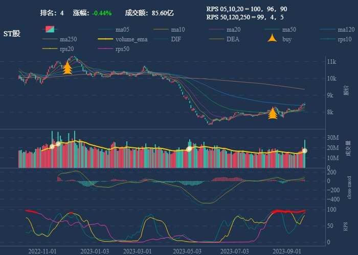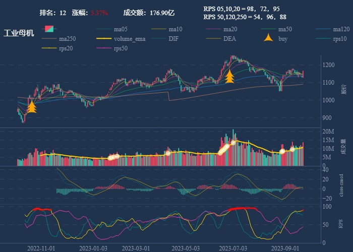 - 第一波行情 rps20 + 10日均线,第二波行情 rps50 + macd反转。