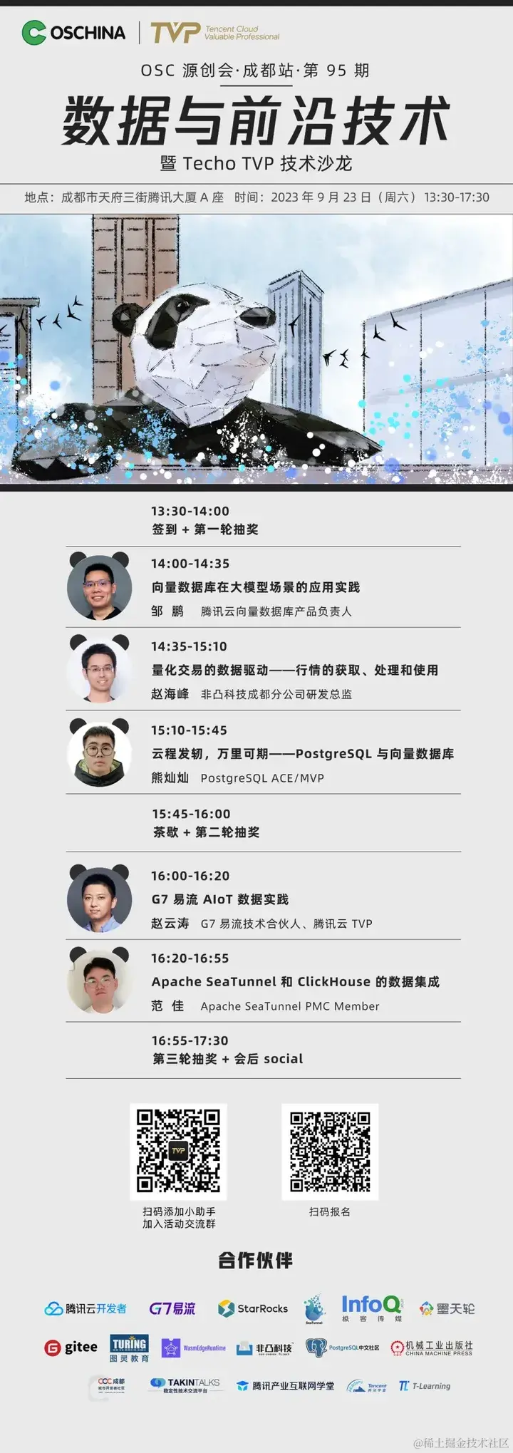 本期腾讯云 TVP 与 OSCHINA 社区强强联合,聚集了 5 位数据领域的大佬,话题涵盖老牌数据库 PostgreSQL 和最新的向量数据库解析,更有来自大数据、数据挖掘领域的讲师带来干货满满的最佳实践分享。