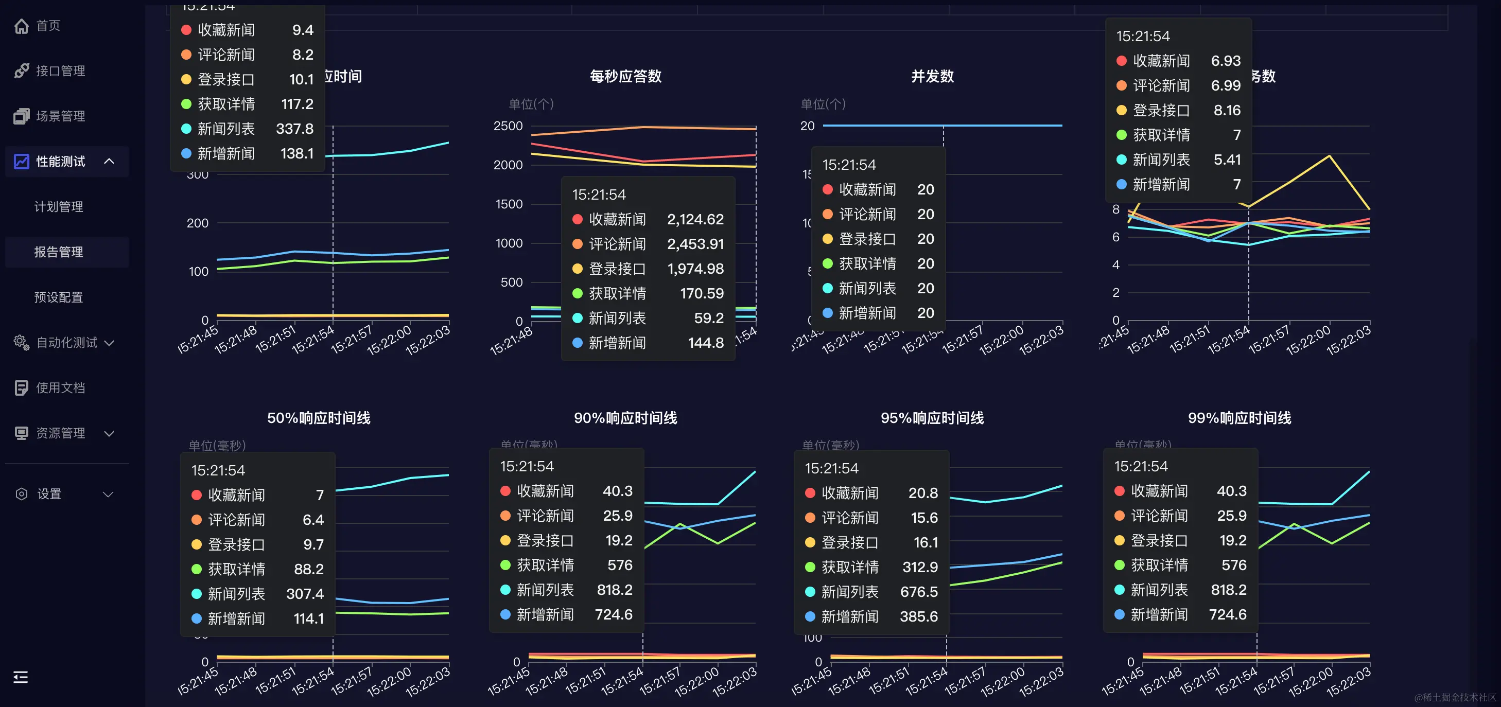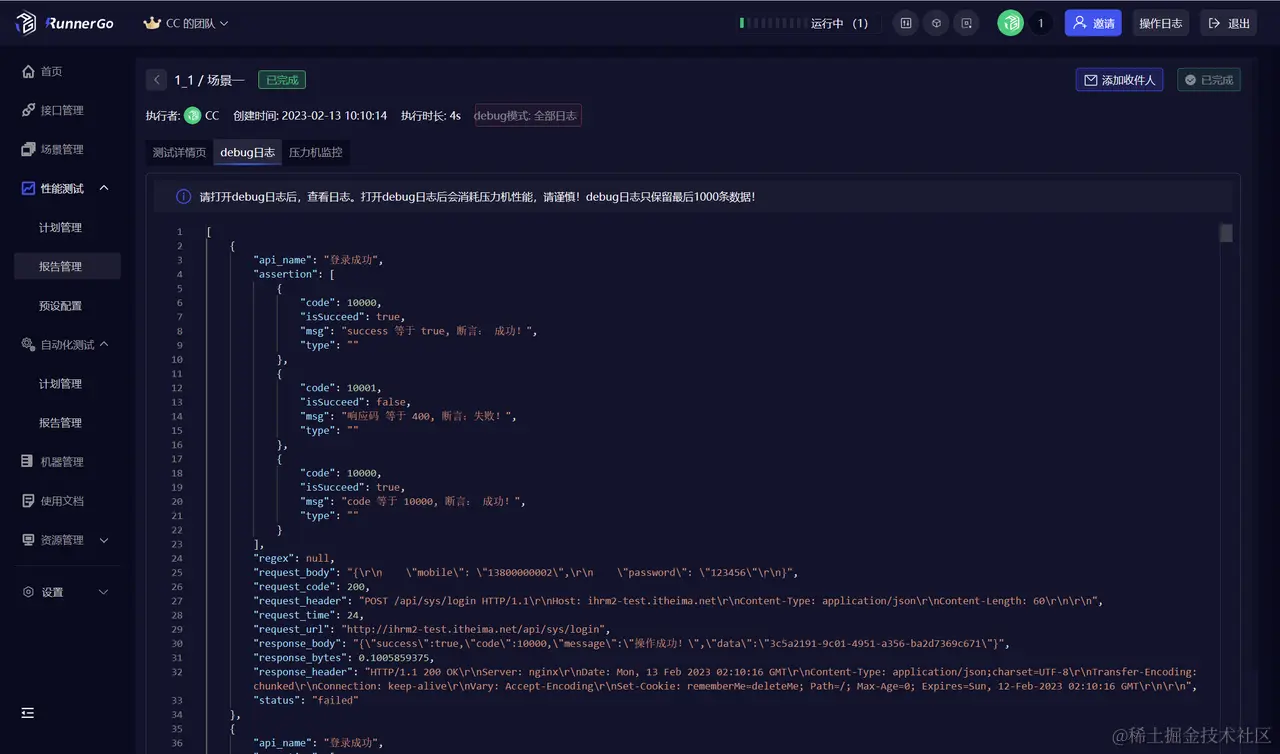 在测试任务执行时在报告管理页面点击查看即可实时查看测试报告