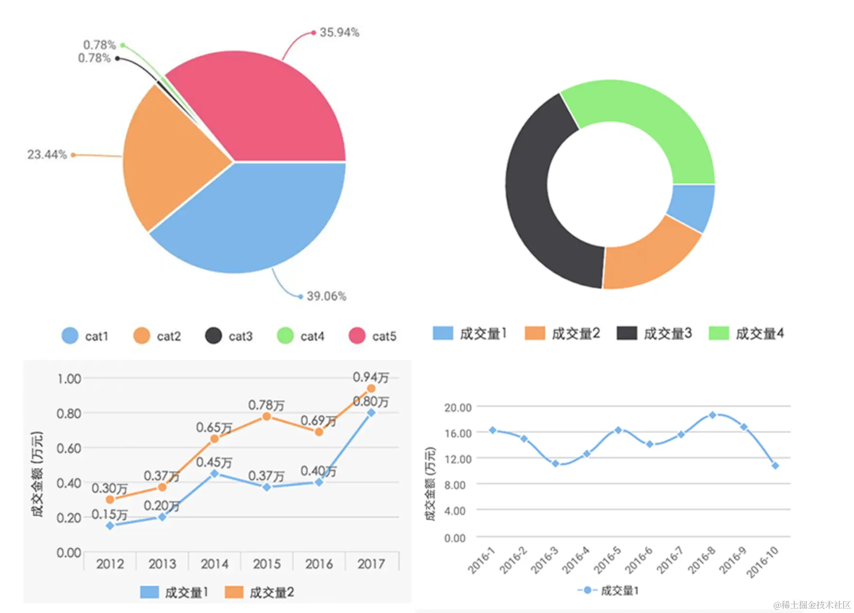 - 折线图:通过连续的线段来表示数据的变化趋势,适用于展示随时间变化的数据。