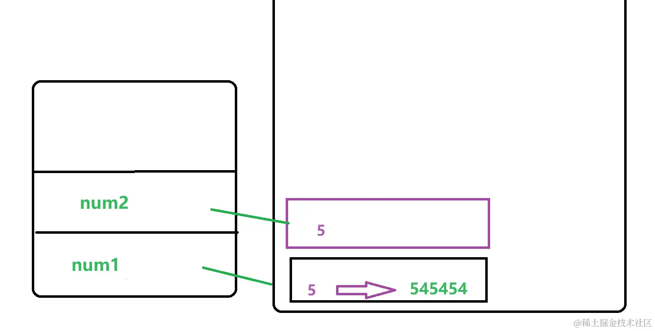 原因是这里的复制的值实际上是一个指针,它指向存储在堆内存中的对象。他们指向的是同一个值。