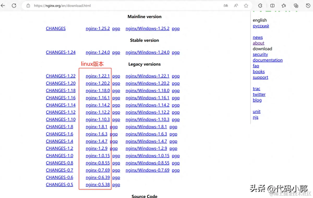 小郭这里选取了nginx-1.9.9的linux版本下载,如果你对版本功能有特殊要求,按需选择哦!