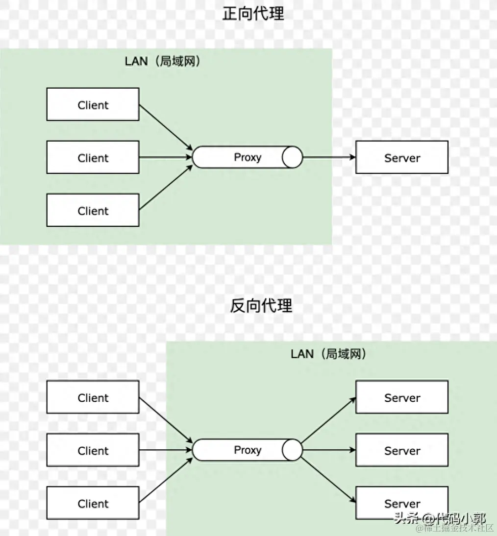 - 正向代理中,服务器并不知道真正的客户端到底是谁;而在反向代理中,客户端也不知道真正的服务器是谁。