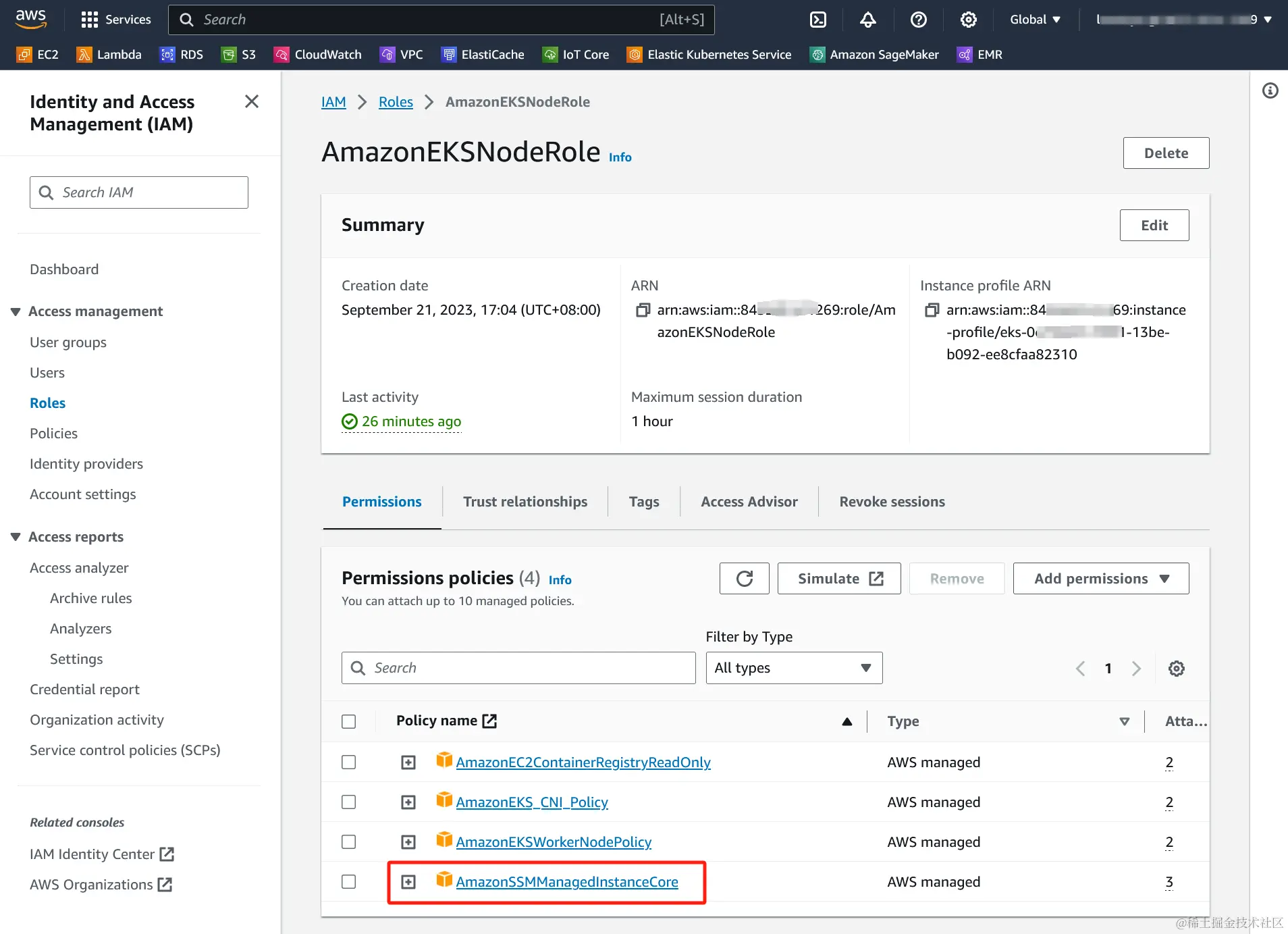 然后我们可以为这个role附加一个名为AmazonSSMManagedInstanceCore的policy