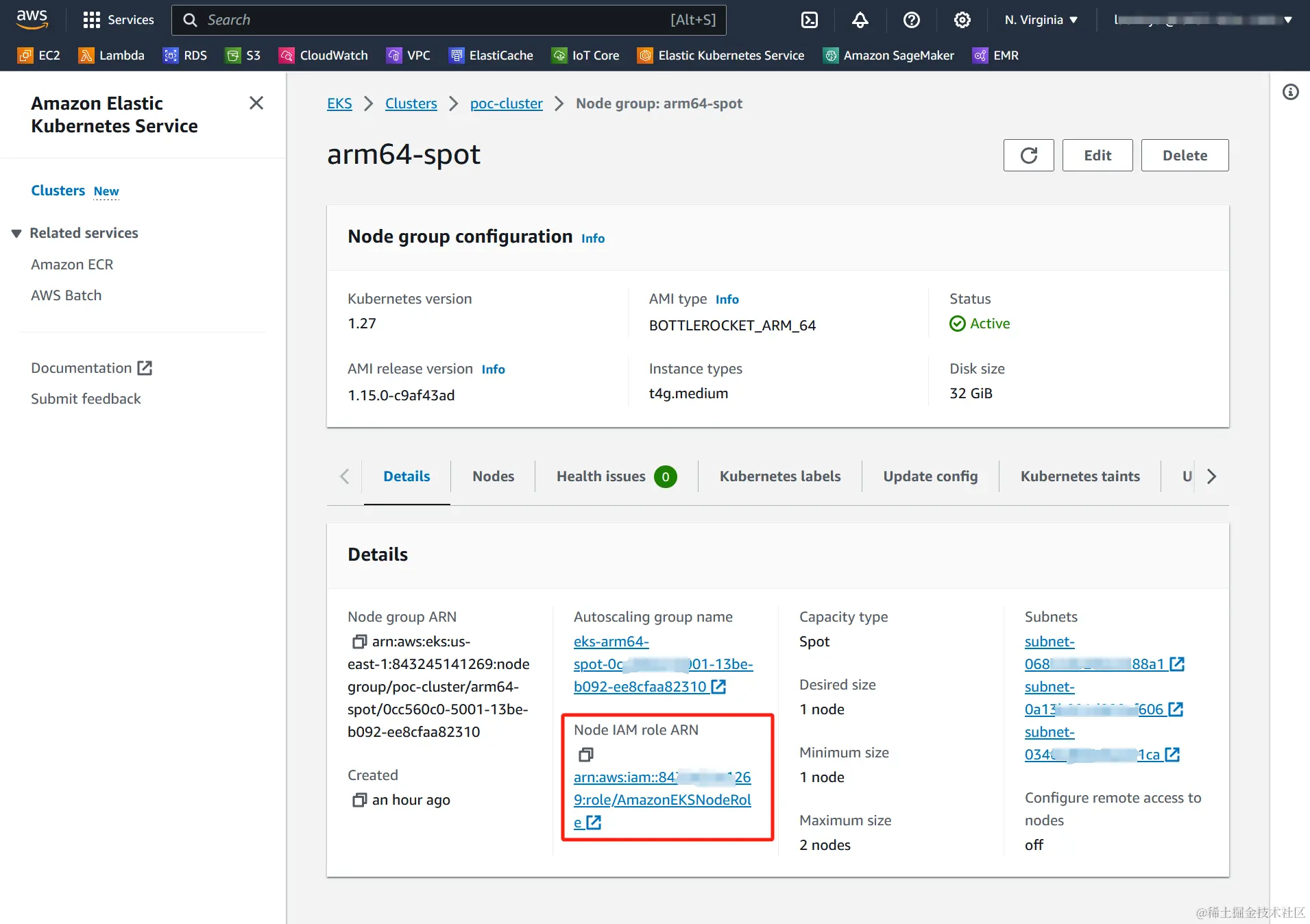 我们可以在EKS的nodegroup中查看当前ec2 node的role
