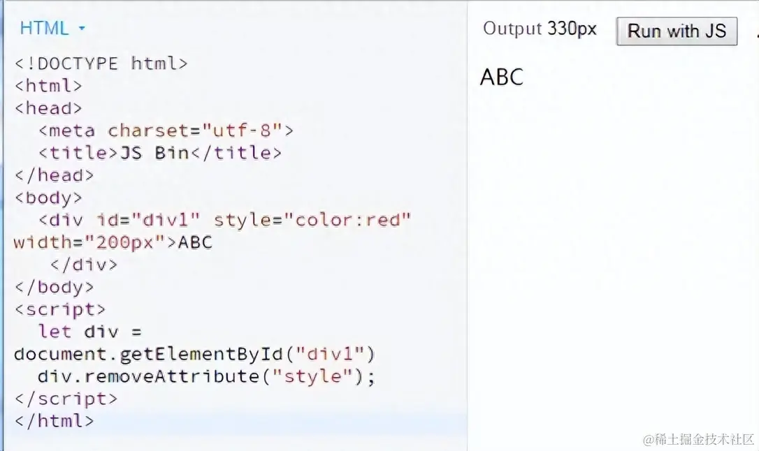 在运行之前div有个style="color:red"的属性,在运行之后这个属性就被删除了