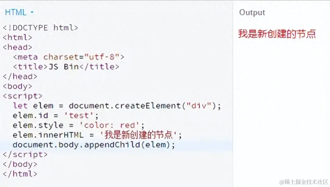 elem.innerHTML = '我是新创建的节点';
