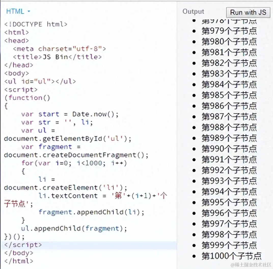 复制代码 let fragment = document.createDocumentFragment();