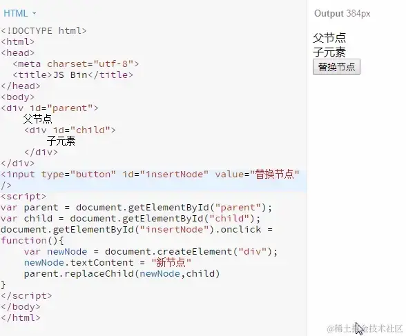复制代码 parent.appendChild(child);