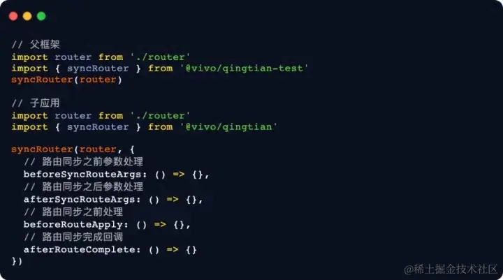 受vue2中数组方法(如push、shift)响应式处理的启发,擎天对前端路由框架进行特殊处理,重写了vue-router的push、replace等方法,当监听到子应用使用以上方法进行路由切换时,会同步到父框架进行操作。