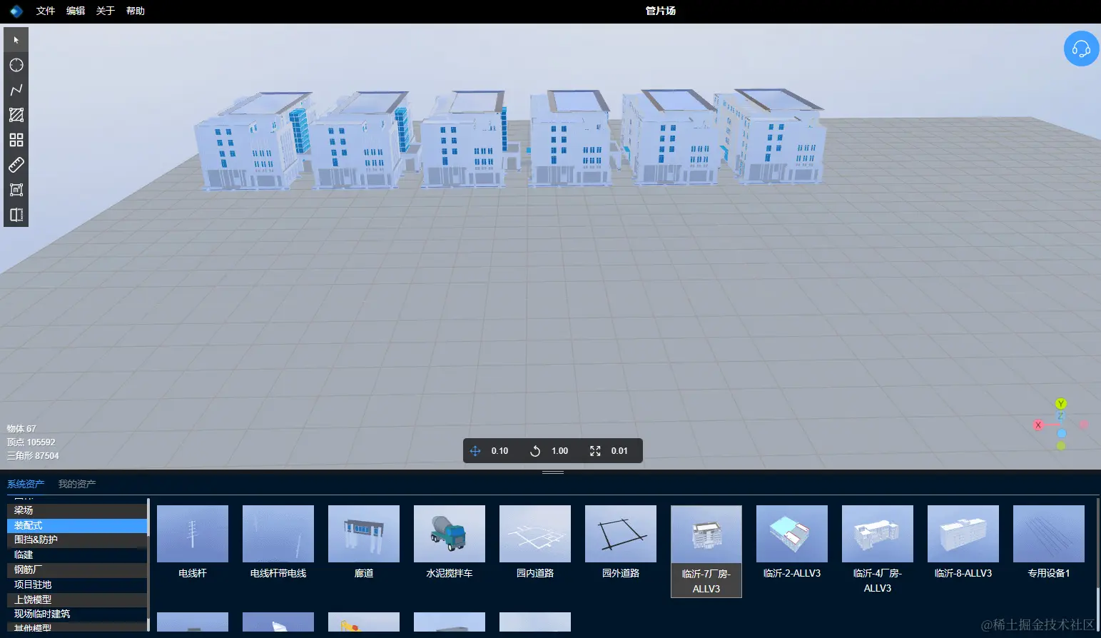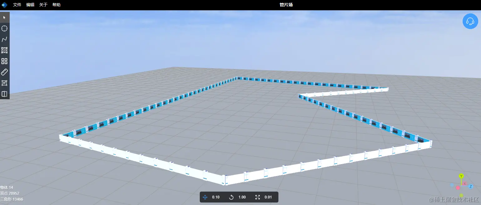 在3D场景应用中,线性绘制的使用场景非常常见,比如:最常见的就是绘制一条公路、一条河、一座桥、围栏、围墙等这种最常见的物体。还有稍微复杂点就是:沿着马路绘制一排电线杆、路灯、或者中一排树。凡是需要按照一定路径来摆放的模型都可以使用线性绘制的方法来绘制。
