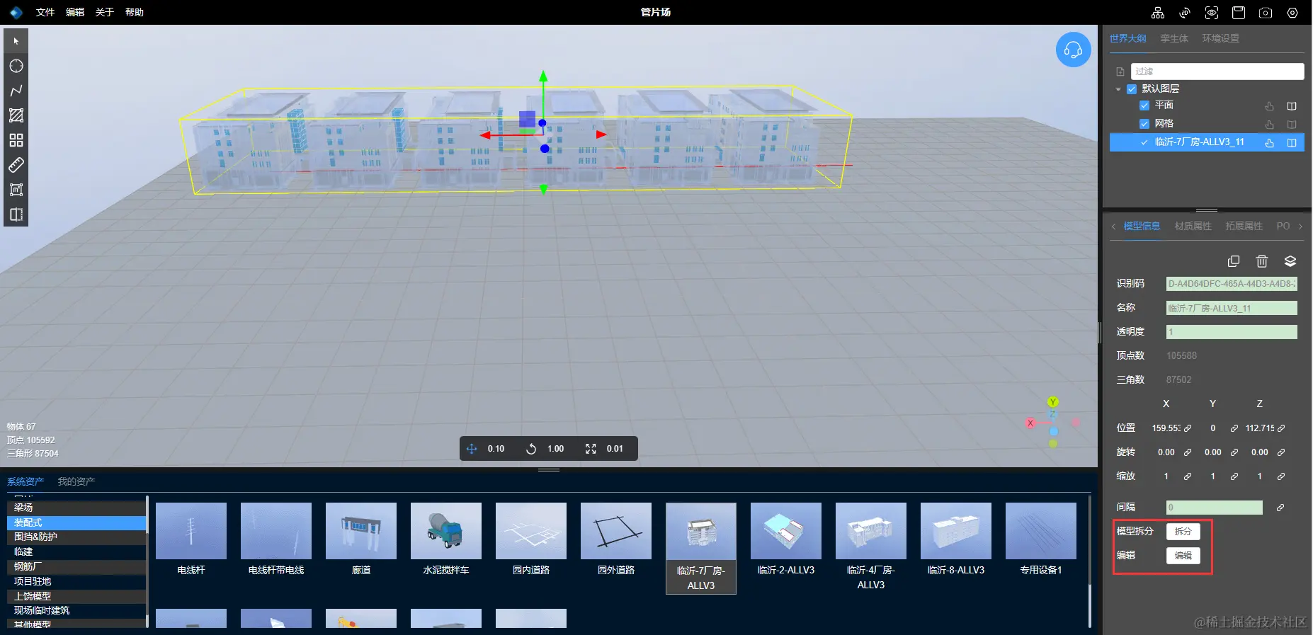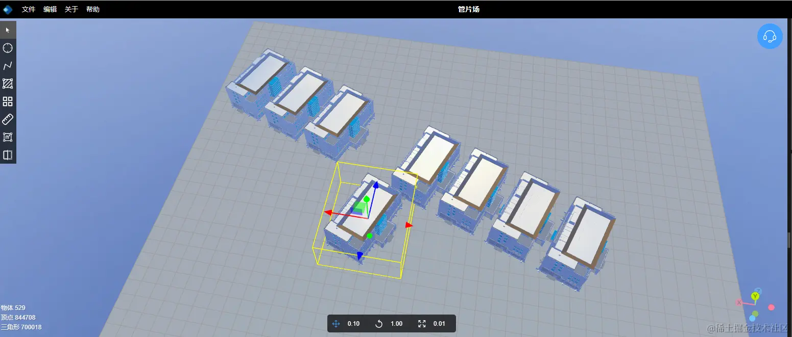 拆分模型(拆分后不能再进行合并):点击右侧面板拆分按钮,联排房子变成了一个个独立的模型了,可以独立操作。
