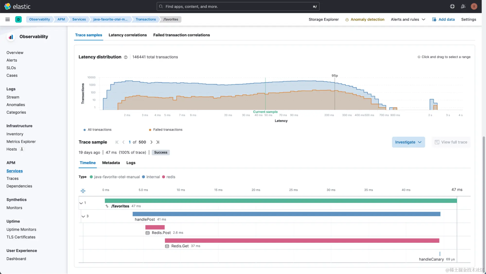 步骤 3:探索 Elastic APM 中的跟踪和日志