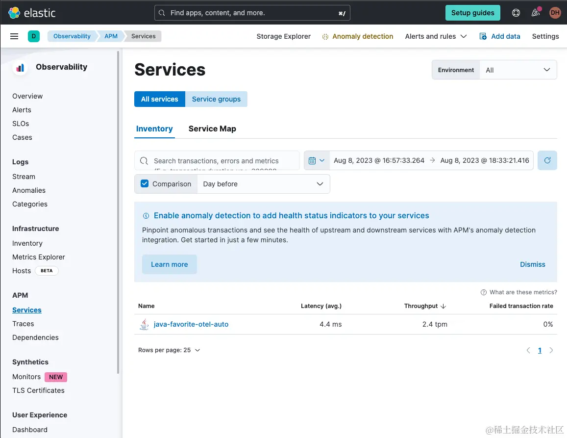 由于 Elastic 可以支持多种摄取数据的方法,无论是使用开源 OpenTelemetry 的自动检测还是使用其本机 APM 代理进行手动检测,你都可以先关注一些应用程序,然后使用稍后以最适合你的业务需求的方式在你的应用程序中打开 OpenTelemetry。