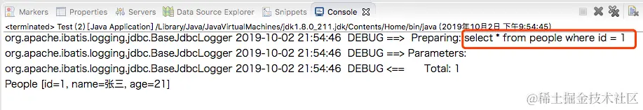 可以看到,合成的 sql 是: select * form people where id = 1