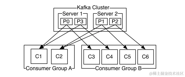 消费者有消费者族群的概念,当生产者将数据发布到topic时,消费者通过pull的方式,定期从服务器拉取数据,当然在pull数据的时候,,服务器会告诉consumer可消费的消息offset。