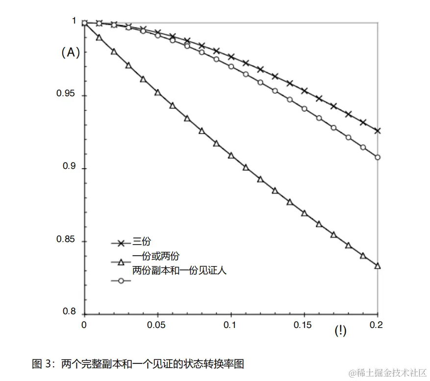 大家应该都了解,分布式存储中为了保证数据不丢失以及系统可用性,会有多副本概念,这里见证者(Witness)就是充当一个副本角色(但是不存储数据,只记录文件最新版本号),这篇论文论证的是,引入了见证者概念的分布式存储,整体可用性不会明显减弱. (这里还会涉及,如果保证见证者记录的是最新的版本号以及见证者不可用的时候,整个系统是否可用等问题)