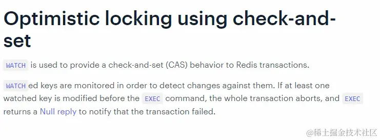 Redis使用Watch来提供乐观锁定,类似于CAS(Check-and-Set)