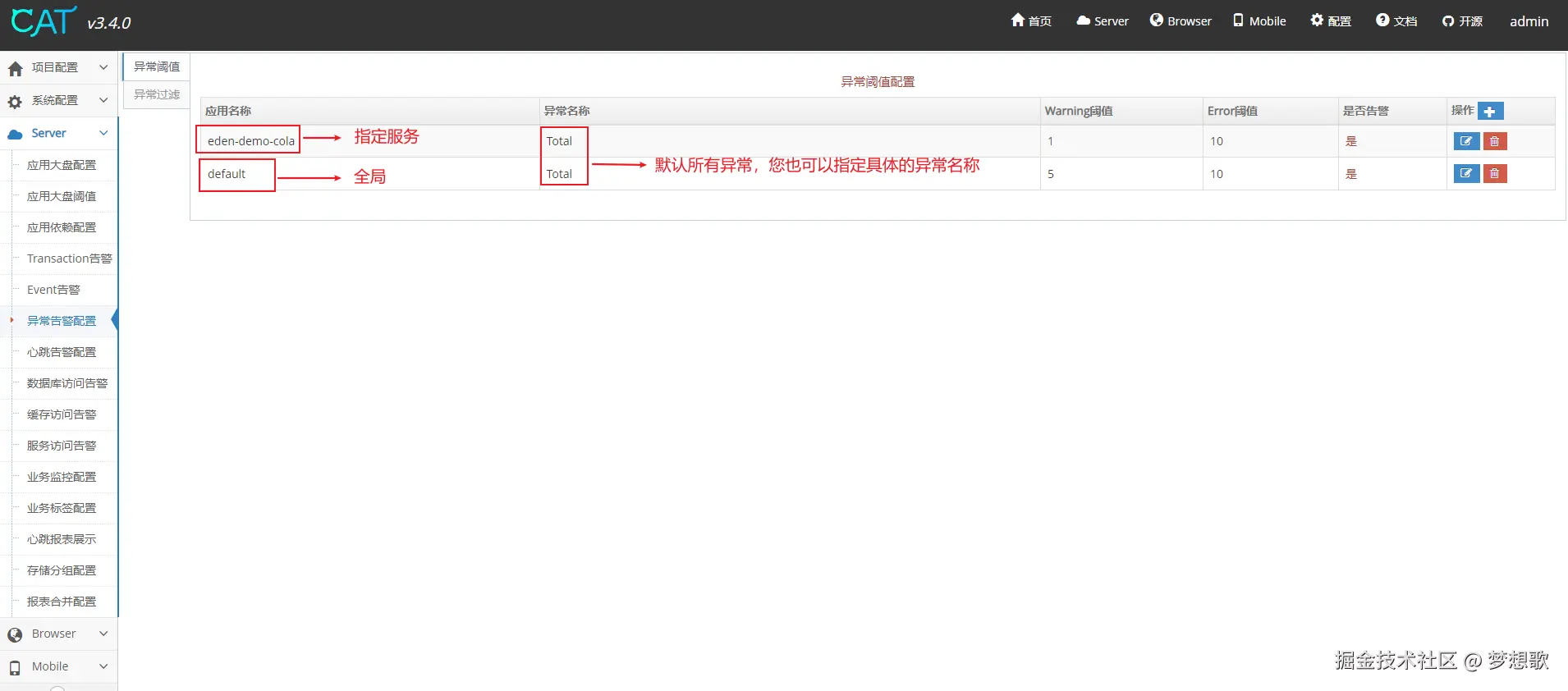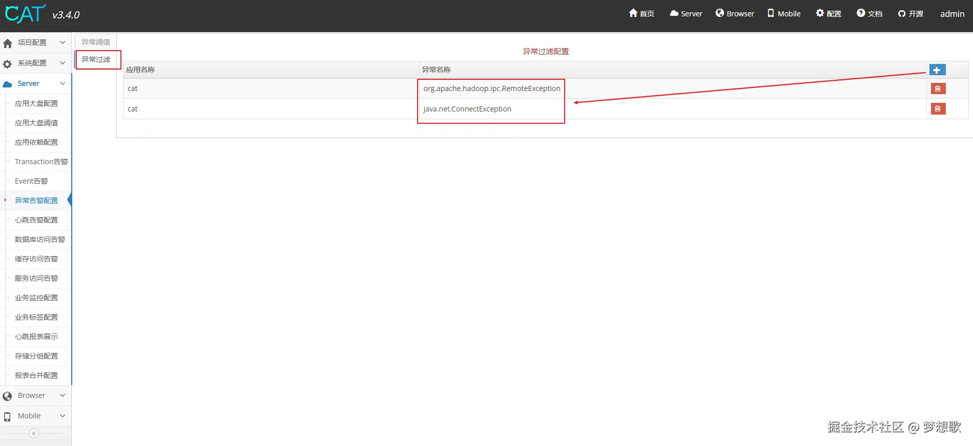 如果有些异常是不需要监控的,请在异常过滤列表添加。