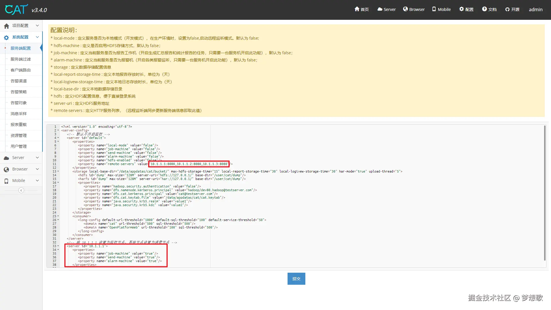 启动后,点击顶部导航栏 配置,从左侧 系统配置 设置 服务端配置。
