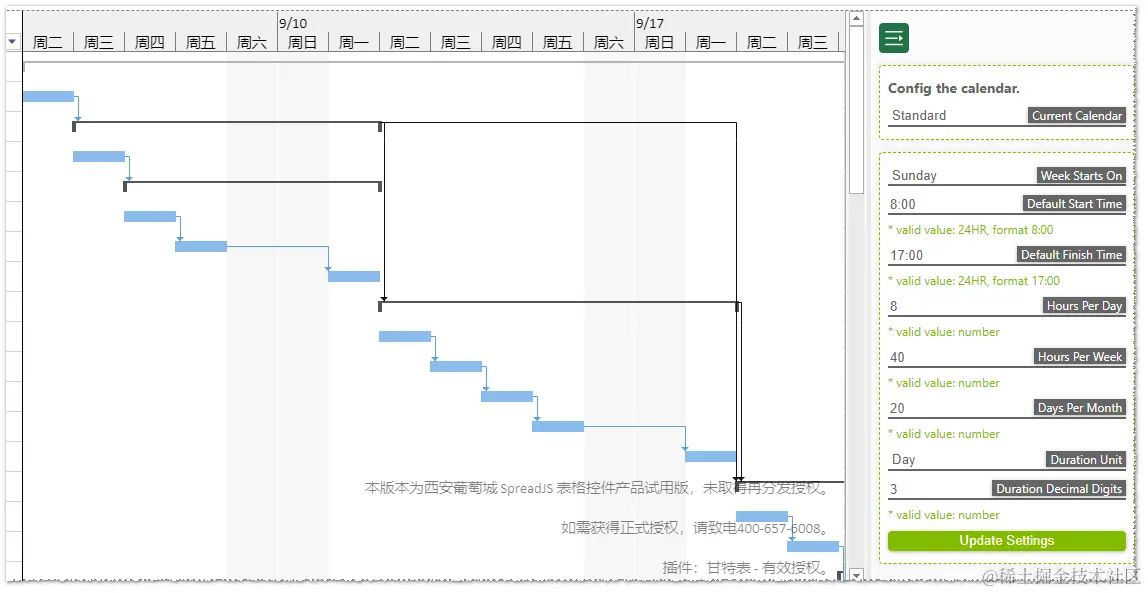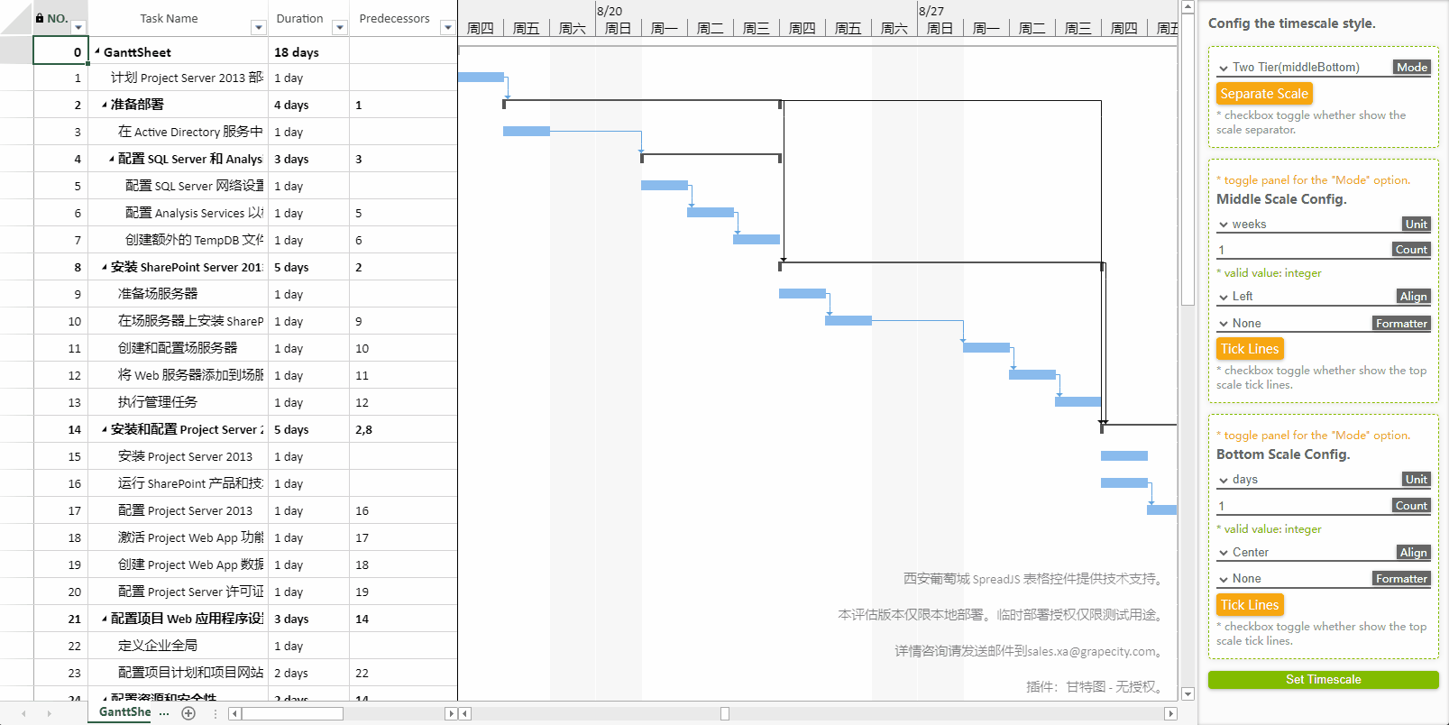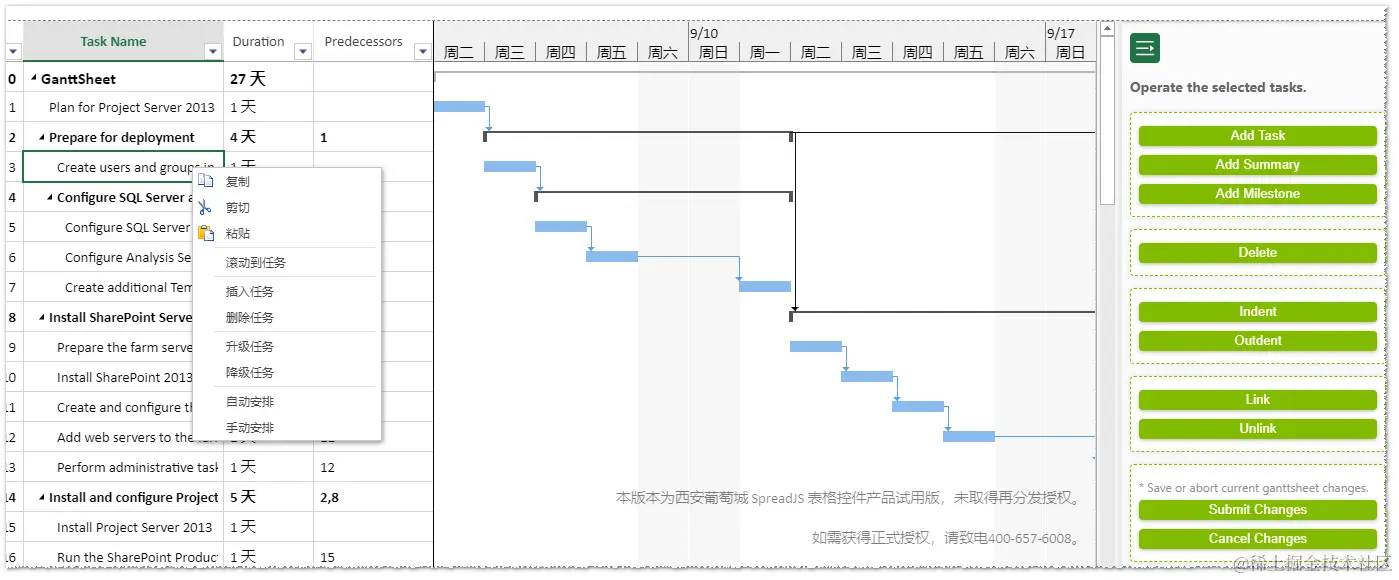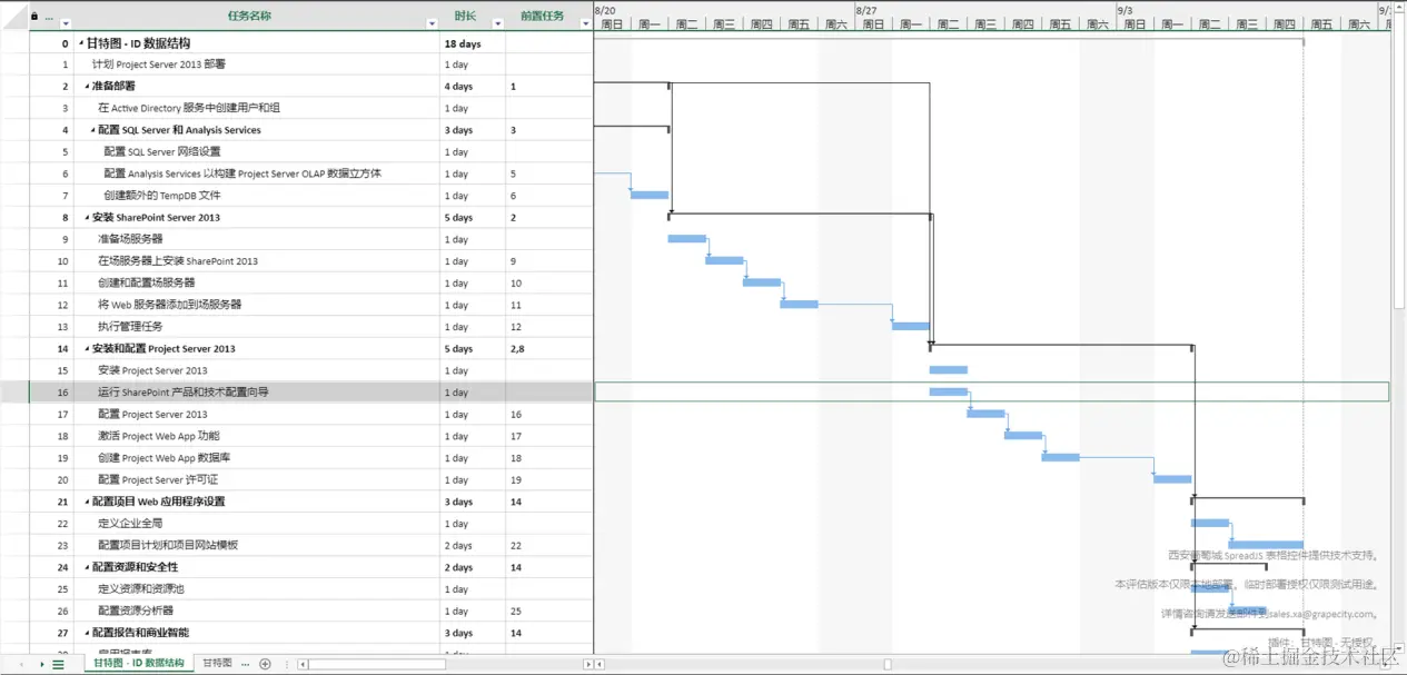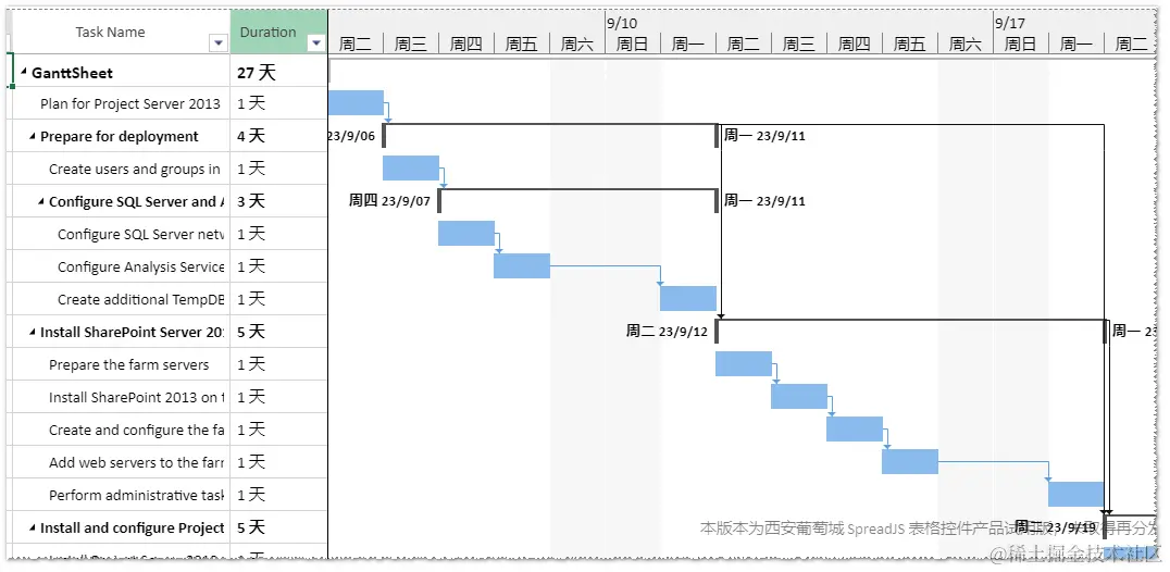 本葡萄今天为大家带来一个新的插件——甘特图插件。该插件是结合 SpreadJS 本身强大电子表格能力提供的一种全新的可视化展示方案,能够有效地将生产计划、预算排期中的日程管理信息展示出来,显示关键路径上关键节点的进展或状态。其数据来自与集算表同源的数据管理器(DataManager),通过绑定 -> 视图的方式,将层级化的任务数据通过甘特图插件进行展示。