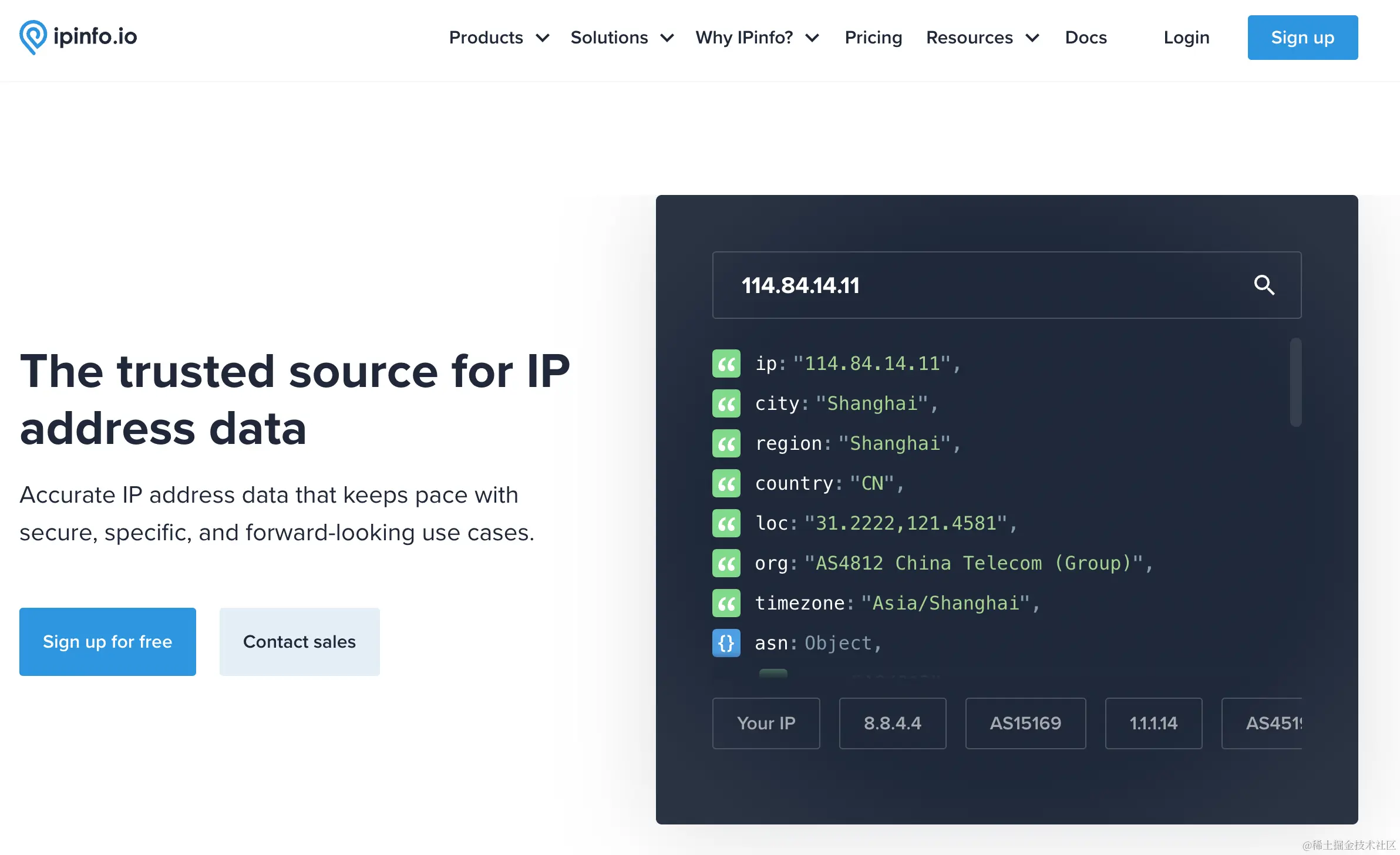 最后,奉上该工具的官网地址:ipinfo.io/ ,感兴趣的小伙伴可以自行前往查看。