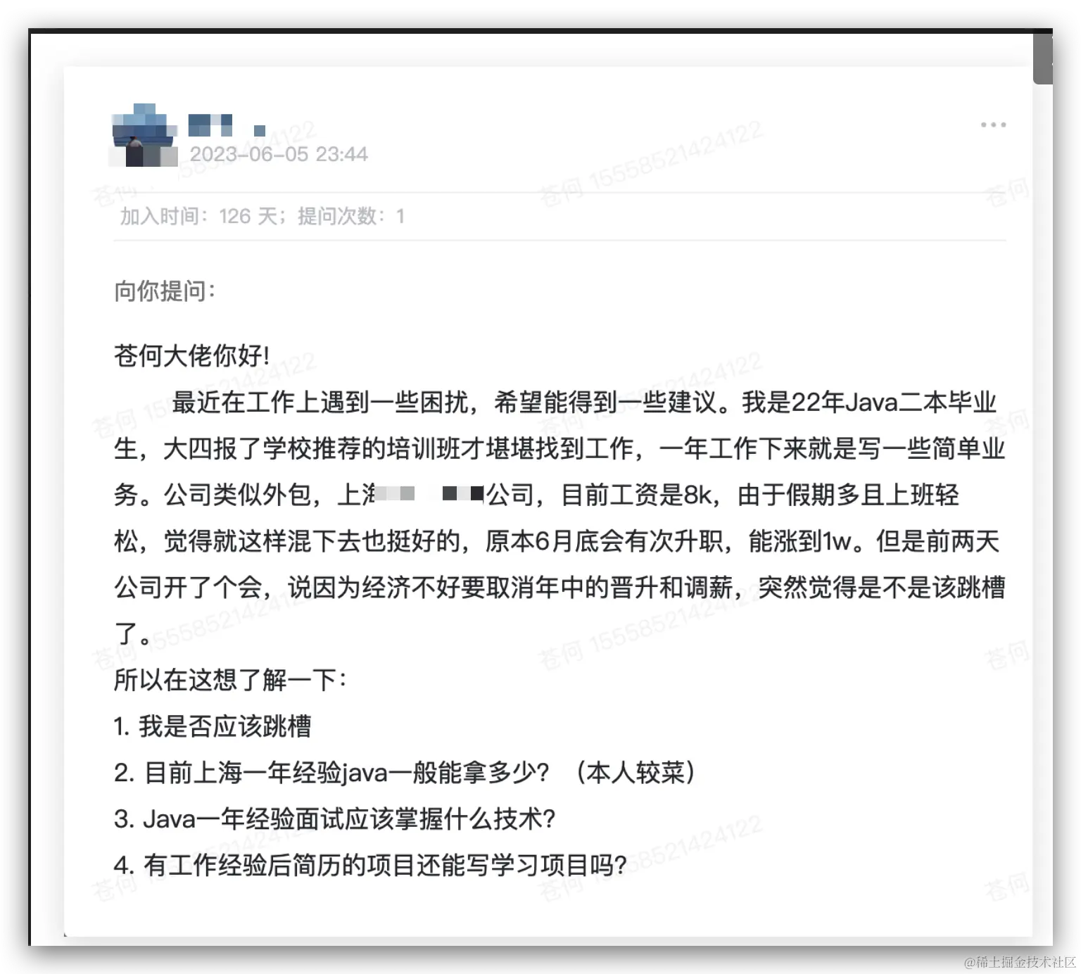 有幸作为鱼皮大佬《编程导航》知识星球的嘉宾,在星球见识到很多上进的小伙伴,果然通过付费帅选出来的社区,比我建的免费群,氛围好很多,每天都有很多人分享干货,也会有很多的同学就自己的困惑进行提问。