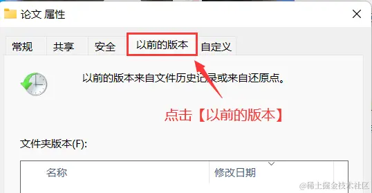 2.将界面切换为【以前的版本】,可以在下方看到文件之前的各个版本,选择你想要恢复的版本将其还原即可。