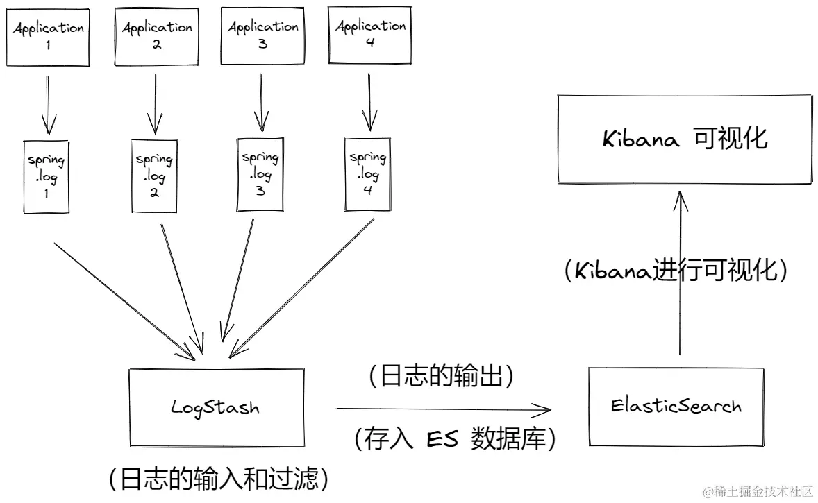 有了上面的本人这一灵魂画手,相信读者对于 ELK 究竟如何帮助我们实现日志框架有了一定的理解,这里就再次赘述一下 ELK 三个组件各自的作用:
