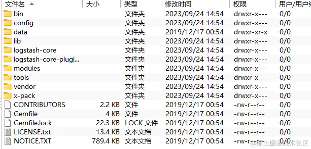 unzip logstash-7.5.1.zip - 可以发现它的目录结构与 ES 也大致相似,因为都是 Java 程序: