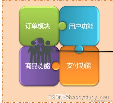 我们常说的分布式架构是在垂直架构的基础上,解决了他们部分功能重复使用的问题,它会将重复的功能抽取出,并供其需要的模块进行调用。但不能重复。但这就会造成一个问题,如果被重复调用的模块出了问题,那该怎么办?所以这也是分布式架构存在的问题,老板没钱,全体员工也会没钱。