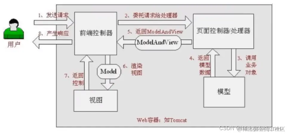 将url映射到java类或java类的方法 ,封装用户提交的数据 .处理请求,调用相关的业务处理--封装响应数据 .将响应的数据进行渲染 . jsp / html 等表示层数据 。