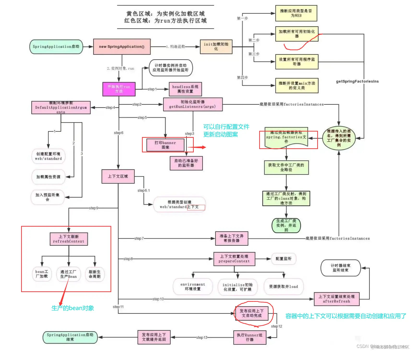 下面再结合狂神老师对spring启动类的运行过程的启动图: