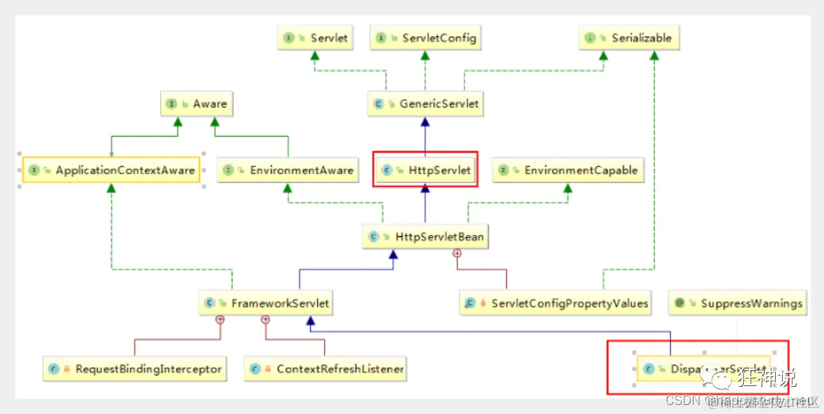dispatcherservlet:类的一些继承关系,这里还是建议大家去ctrl+左键去一层一层的看一下。