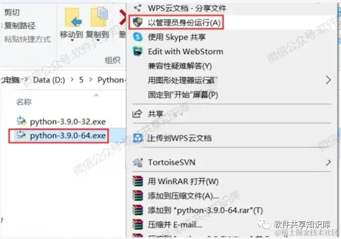 3.选中python-3.9.0-64鼠标右键 以管理员身份运行。