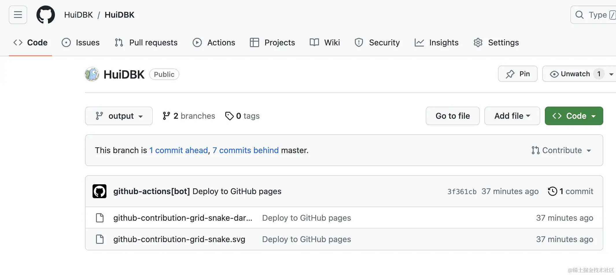 查看是否运行成功,如果一直失败可以查看下官方的工作流是否变更 github.com/Platane/snk